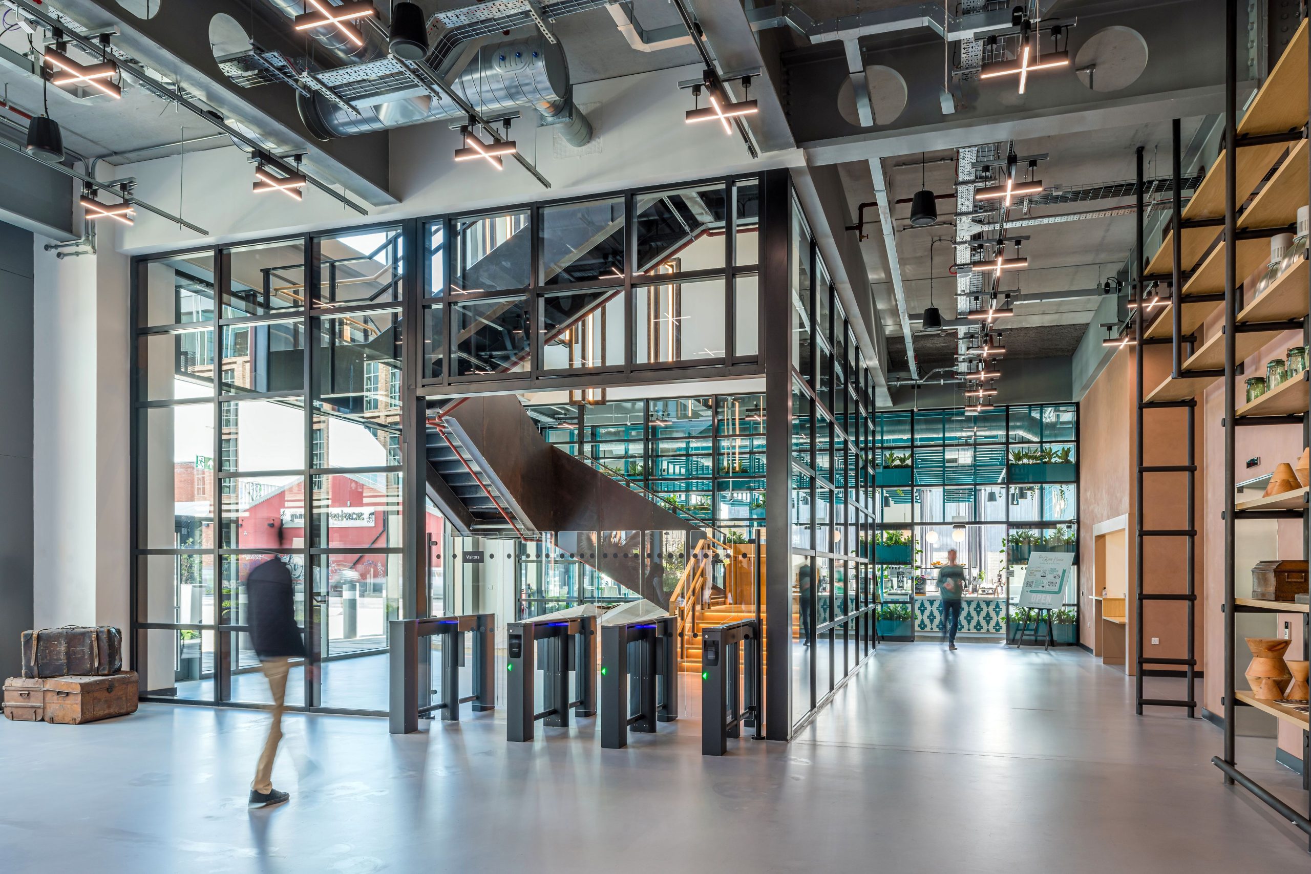 The campus blends new-build architecture with the careful restoration of Clyde Place House and the BECO building. Three main buildings include offices, retail, gyms, restaurants, and assembly spaces, while the heritage structures provide flexible multi-use areas. Additional facilities such as wellbeing spaces, exhibition areas, and a street food market enhance both employee experience and community engagement.